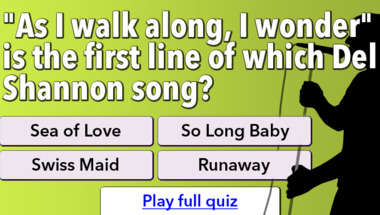 6/10 is what people on average are scoring in this 1960s Song Lyrics quiz so far. Are you ready to answer questions like "What line follows "Cupid, draw back your bow" in the Sam Cooke song?" and "The Searchers were singing about sugar and what in 1963?"