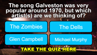 In this fun trivia quiz we're going to ask questions like "The song "Galveston" was very popular around 1970, but which artist(s) are we thinkin.." and "The song "Take Me Home, Country Roads" was very popular around 1972, but which artist..".