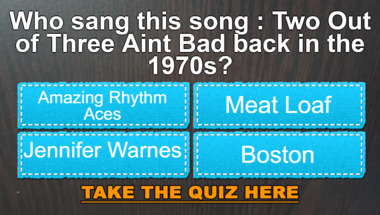 6/10 is what people on average are scoring in this trivia quiz so far. Are you ready to answer questions like "Who sang this song : "We've Only Just Begun" back in the 1970s?" and "Who sang this song : "Two Out of Three Ain't Bad" back in the 1970s?"