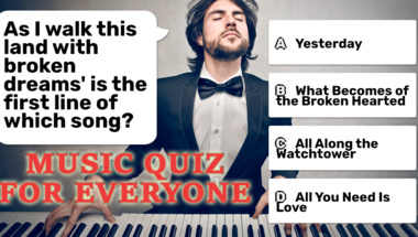 If you can answer "Which Abba song starts "Can you hear the drums"?" and maybe even "What's "gonna get you, look you right in the face" sang John Lennon?" there is a good chance that you're going to beat the average score of 6/10 in this trivia quiz