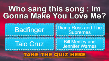 In this fun Love songs quiz we're going to ask questions like "Who sang this song : "I'm Gonna Make You Love Me"?" and "Who sang this song : "So Sad (To Watch Good Love Go Bad)"?".