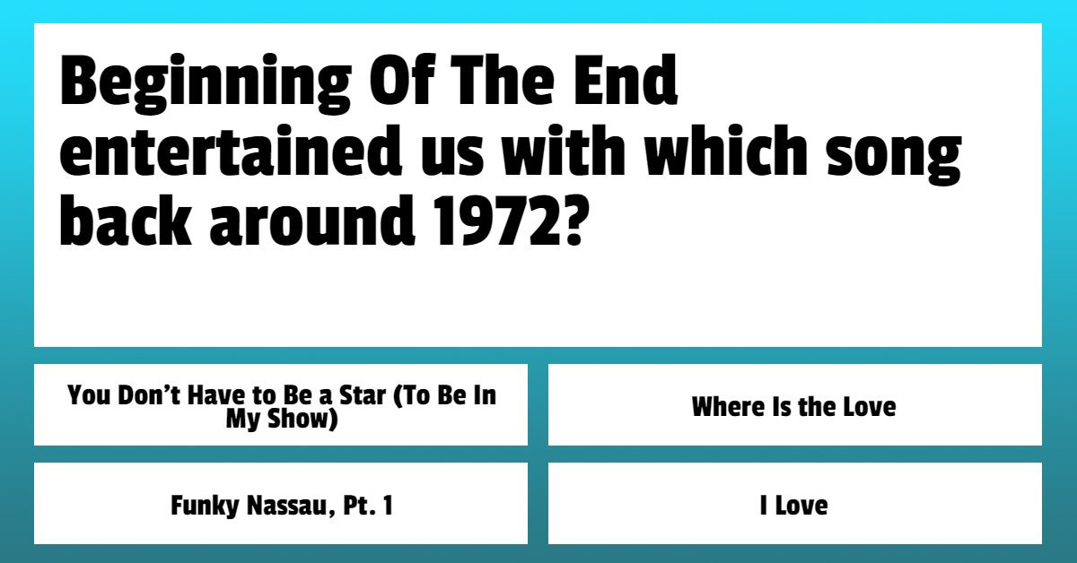 Beginning Of The End entertained us with which song back around 1972?