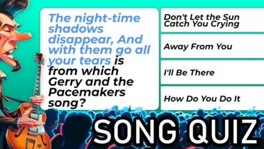 Look forward to questions like ""The night-time shadows disappear, And with them go all your tears" is from which Ger.." and ""Just a plain and simple chapel, Where humble people go to pray" is from a song by wh.."